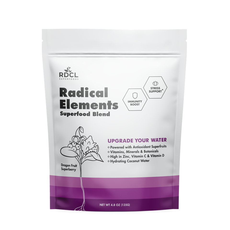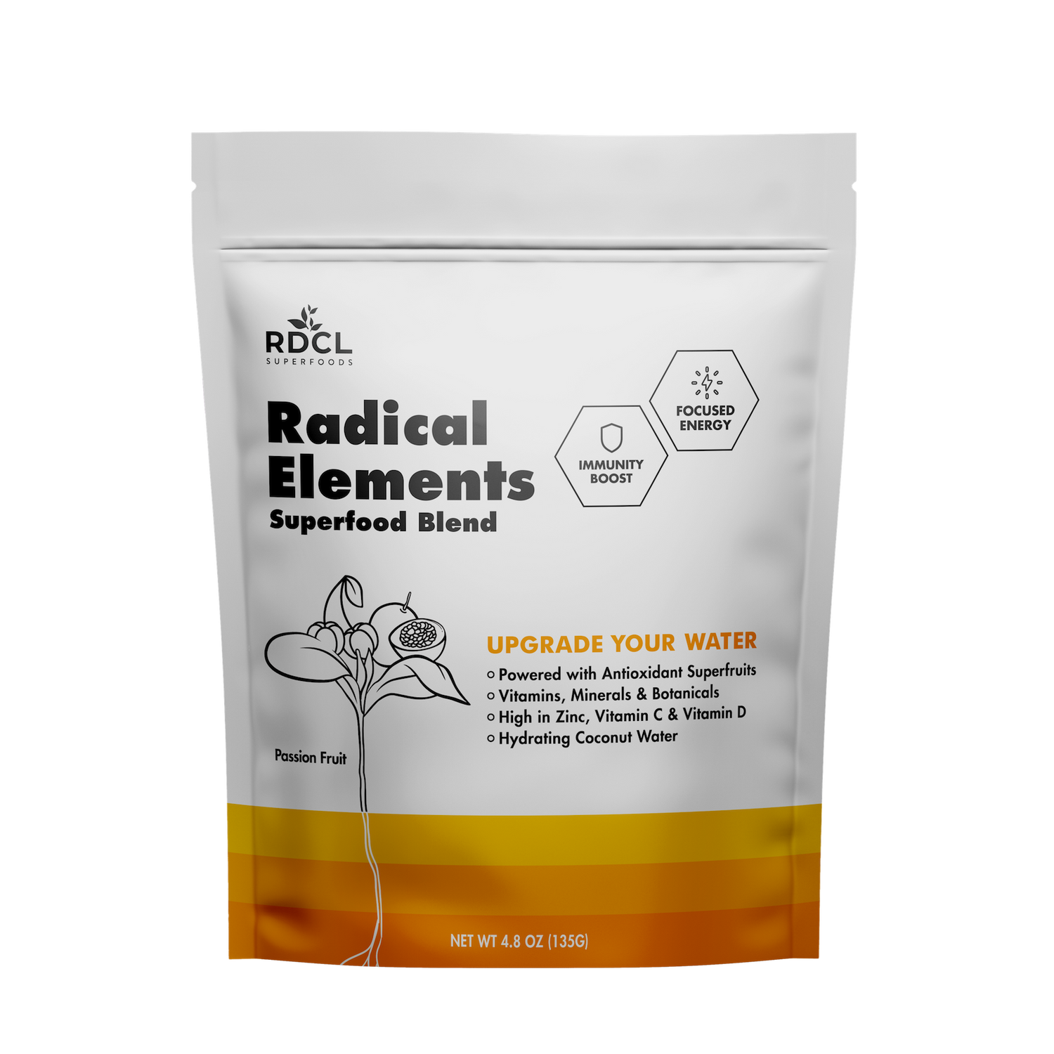 Radical Elements is 100% plant-based and features beneficial, real-food ingredients.