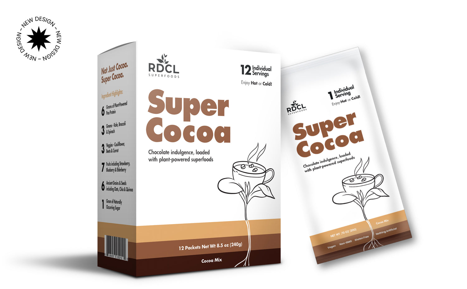 Behold Super Cocoa! We cut out the junk and replaced it with nutritious, plant-based ingredients - but without sacrificing the delectable taste. It's a unique twist on your favorite chocolate indulgence.
