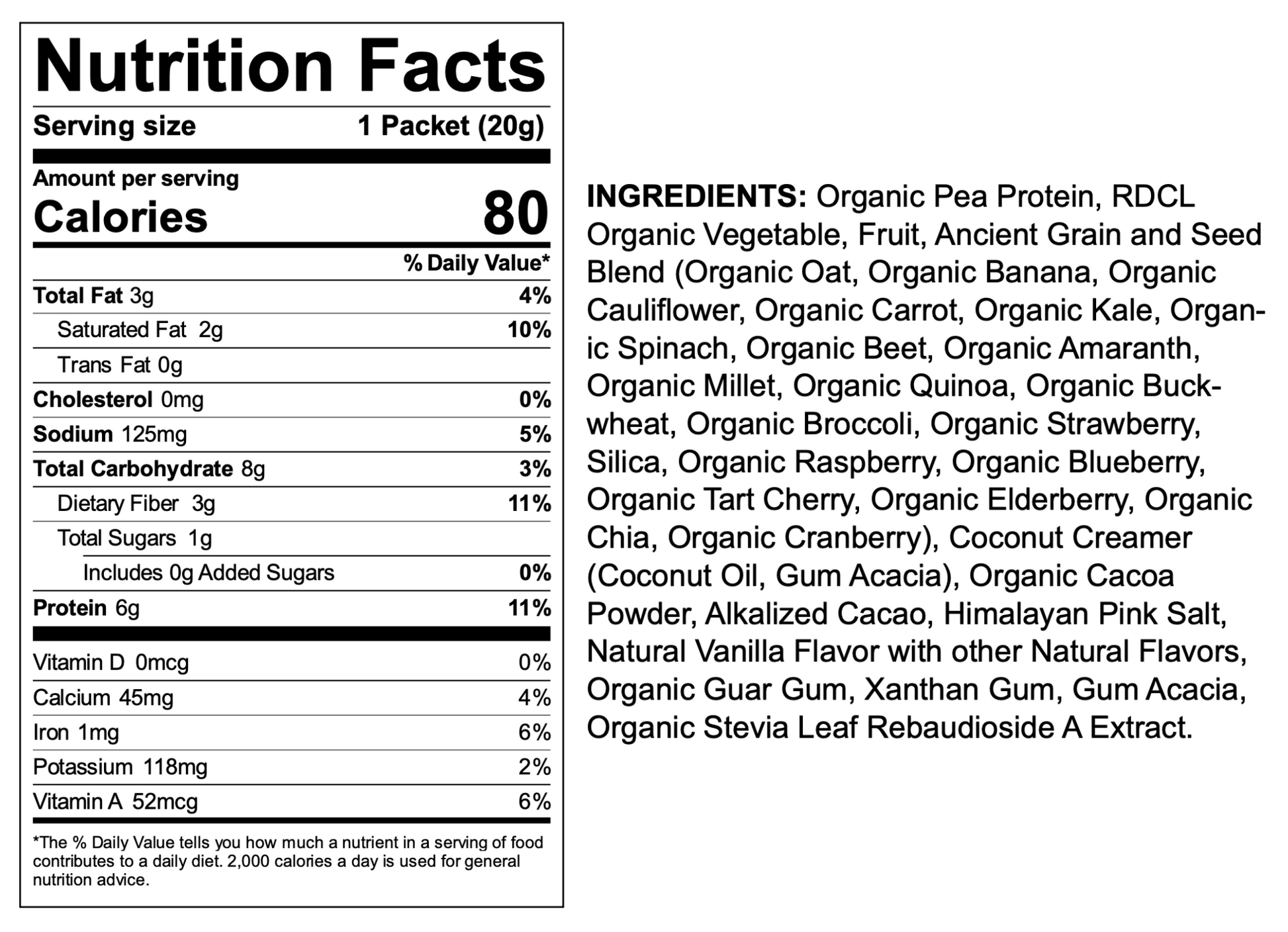 Each serving of Super Cocoa contains 6 grams of high-quality, organic pea protein. It contains all 9 essential amino acids, is rich in iron, and can help build muscle mass. Plus, it makes our Super Cocoa more satiating if you have it as a "mini" meal or as a bridge to keep you going between main meals. Source